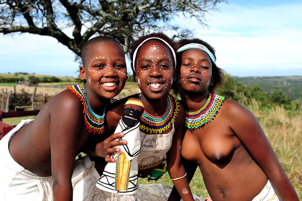 Young bare breasted Xhosa girls in traditional procession