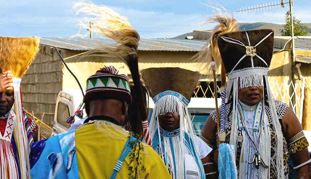 Xhosa men wearing their traditional Mfengu headband