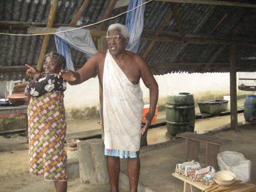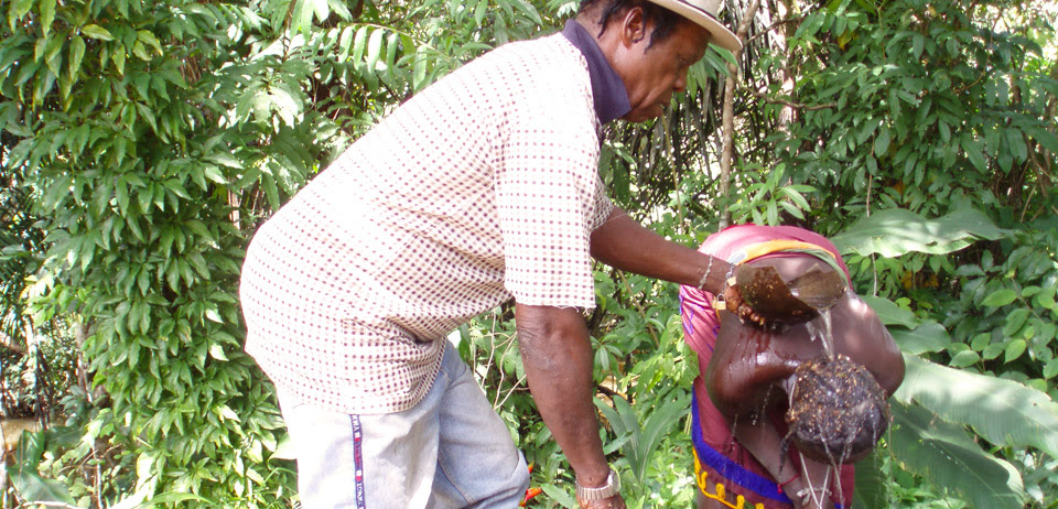 Here a woman who is supposed to be possessed by a snake's spirit (which is rather serious) is the center of elaborate rituals involving offerings and the herbal bath shown on the photo during the day and (wild) dancing during the night.