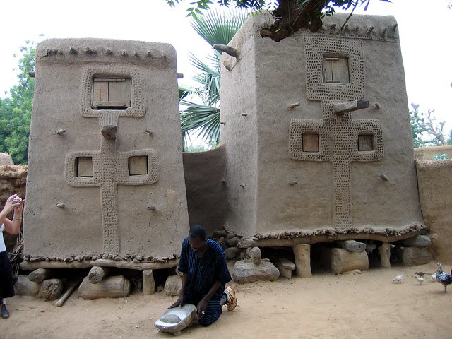 The priests of each Binu maintain the sanctuaries whose facades are often painted with graphic signs and mystic symbols. Sacrifices of blood and millet porridge the primary crop of the Dogon are made at the Binu shrines at sowing time and whenever the intercession of the immortal ancestor is desired.