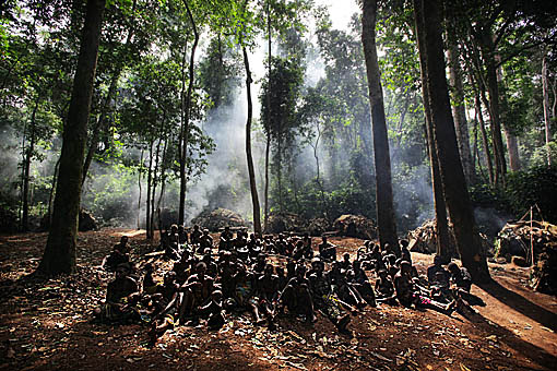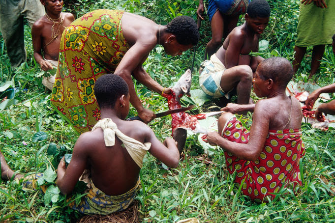 All Aka adolescent boys are taken on an elephant hunt by a tuma to learn how to hunt elephant as well as to learn about the secret lore of dzengi. While women are kept peripheral to powers and secrets of dzengi, most women I spoke to about dzengi were not mystified or fearful of dzengi or the men's secrets, and in fact, sometimes laughed and said it was just a way the men tried to keep knowledge and power from them.