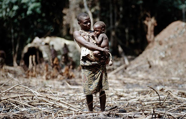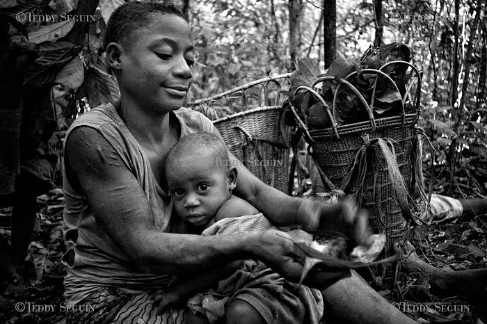 Bayaka pygmy mother and her baby, Lobaye region, Central African Republic. Olivier Blaise