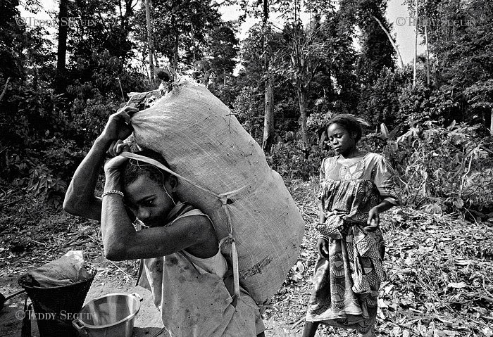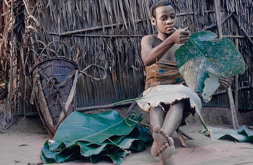 In Wazengué camp, as in all Lobaye district, Bantu people comes from Bangui, Central African republic capital, to exchange alcohol or crumple with coco leaves gathered by Aka pygmies. Coco leaves grow on a wild creeper in the forest. It constitutes one basis of the Central African republic food