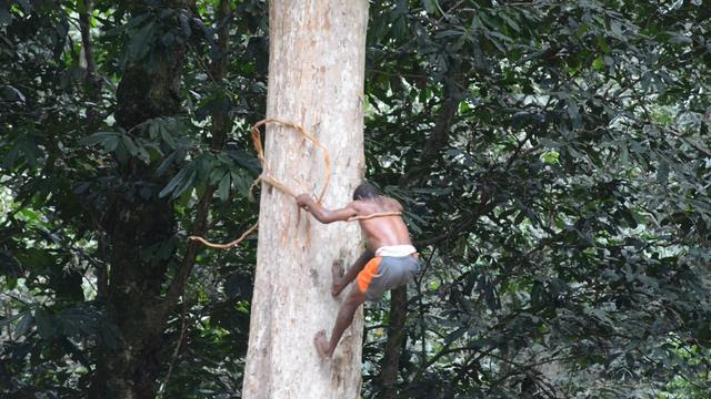 Although both men and women collect leaves, fruits, nuts, mush- rooms, and termites, women do the majority of the collecting. They may do this as a conjugal unit or individually. Men do the majority of the honey collecting, especially if it involves climbing a tree large in diameter. Both men and women net hunt, usually together, but sometimes individually, and men and women both use small traps to hunt, often together, but again, sometimes individually. Only men use the spear and crossbow to hunt.