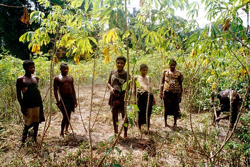 Bayaka male and female pygmies of Lobaye region, CAR, working together